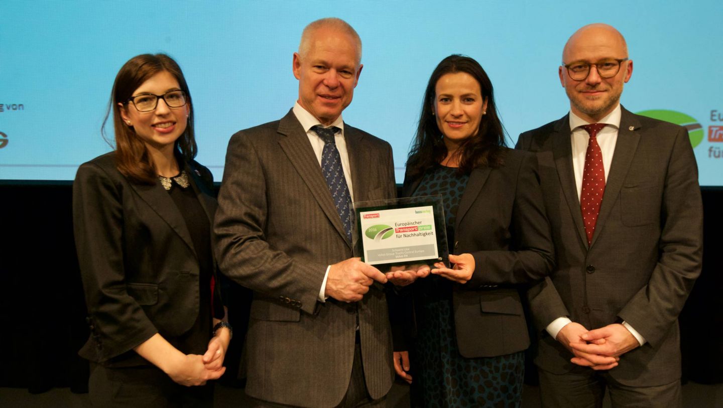 Gregorius W. Keja, Geschäftsführer und CFO der Volvo Group Trucks Central Europe GmbH (2.v.l. mit weiteren Kollegen von Volvo Group Trucks) nahm die Auszeichnung entgegen.