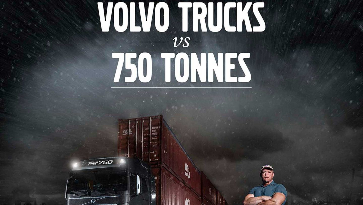 Hier können Sie den Film „Volvo Trucks gegen 750 Tonnen" sehen: ttps://www.youtube.com/watch?v=5UUz1zTZFfU