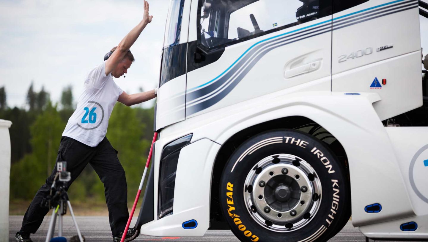 Die Rekordfahrten wurden im „Skellefteå Drive Center" durchgeführt, einem ehemaligen Flugplatz bei Skellefteå in Nordschweden. Der Lkw legte die Fahrstrecke in beide Richtungen zurück. Anhand dieser zwei Fahrten wurden Durchschnittszeit und -geschwindigkeit berechnet.