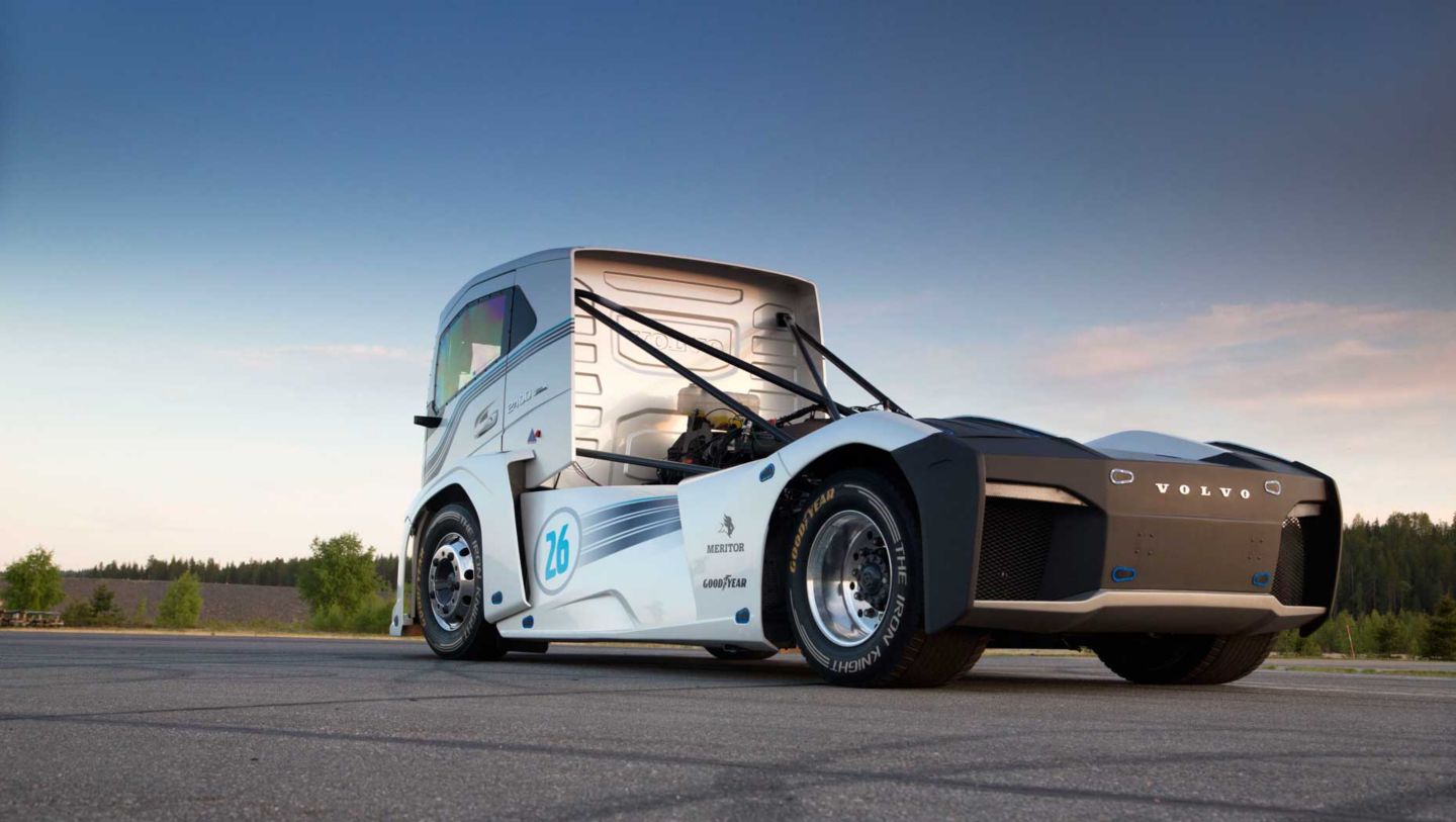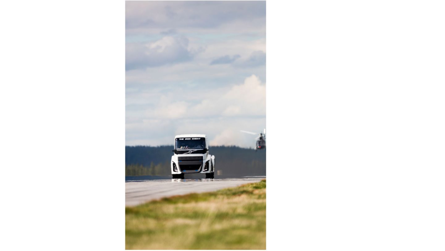 „The Iron Knight" von Volvo Trucks, gefahren von Boije Ovebrink, hält jetzt die Geschwindigkeitsrekorde für die Distanzen 500 und 1.000 Meter. Während seiner Arbeit an dem Lkw fand ein Expertenteam von Volvo Trucks innovative Wege, um Technologie und Design zu verbinden. „Dies zeigt, dass unser I-Shift-Dual Clutch enormes Potenzial hat und den Fahrer auch unter extremen Bedingungen nicht im Stich lässt. Die Tatsache, dass der Weltrekordbrecher genau dasselbe Doppelkupplungsgetriebe verwendet, das auch in unseren seriengefertigten FH-Lkw eingesetzt wird, ist etwas, auf das wir wirklich stolz sind", erklärt Claes Nilsson, President und CEO von Volvo Trucks.