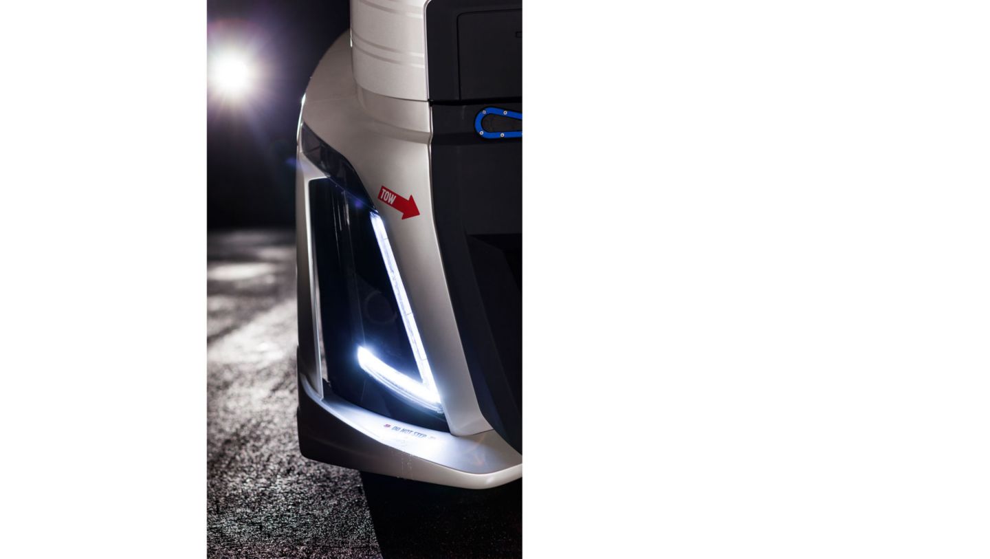 „The Iron Knight" ist eine Hommage an den Volvo FH. Seine Technologie und sein Design ergänzen einander, und jedes einzelne Detail - vom Kühlergrill an der Fahrzeugfront bis zu den Seitenverkleidungen - erfüllt eine präzise Funktion.