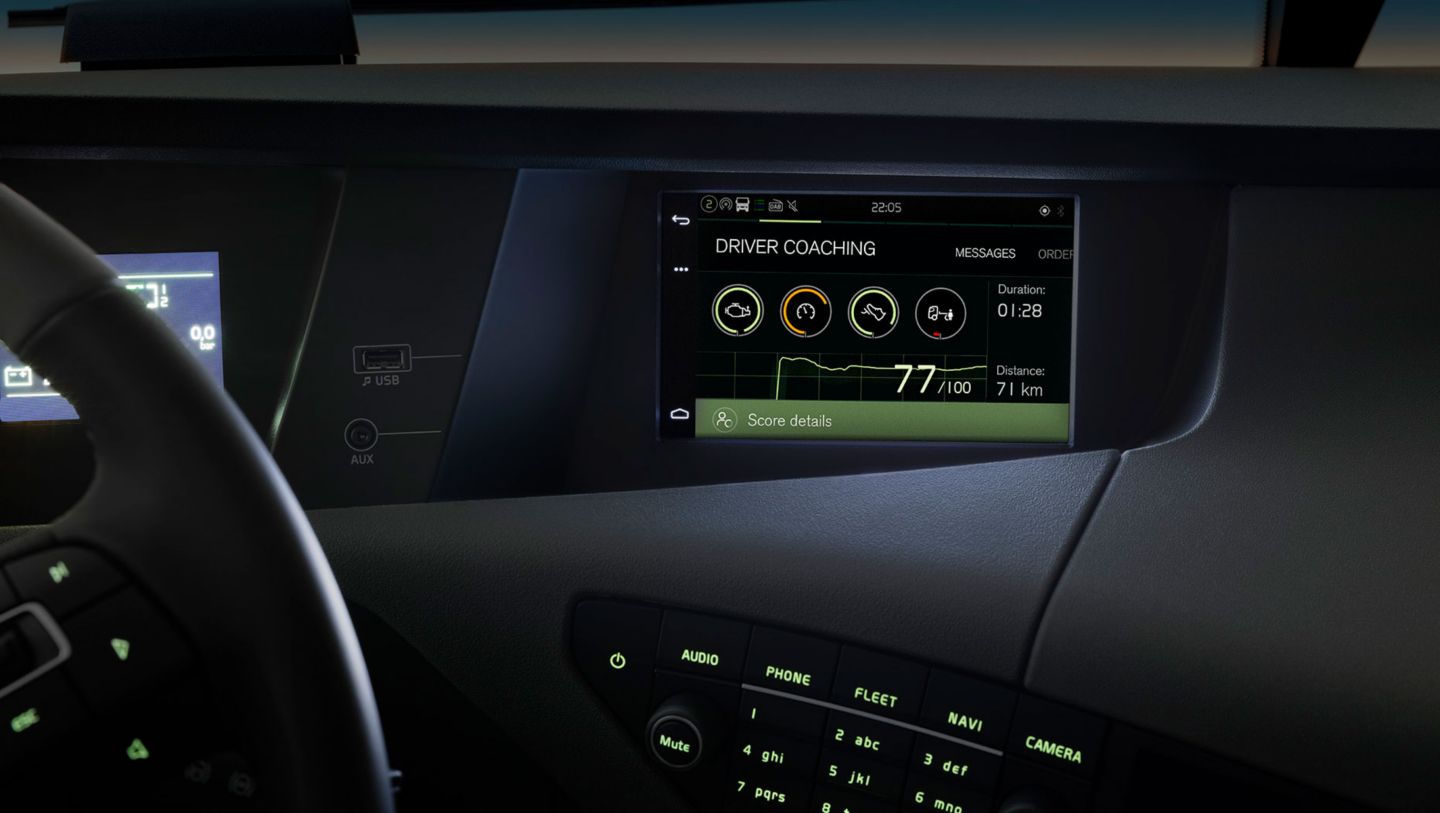 Das neue System ermöglicht eine einfachere und effizientere Auftragsabwicklung. Für die Zielführung akzeptiert das Navigationssystem des Fahrzeugs verschiedene Eingabemöglichkeiten. Alternativ zur Eingabe von Adressen oder Koordinaten reicht es aus, die auf dem Touchscreen angezeigte Karte zu berühren. Überdies können Fahrer auf alle Dynafleet OnBoard-Dienste einschließlich Lenkzeitsupport, Fahrercoaching und Nachrichten zugreifen. Für den Fahrer bedeutet dies, dass er stets auf dem Laufenden bleibt, nie die Kontrolle verliert und in Echtzeit entscheiden kann. Außerdem kann er seine fahrerische Leistung und den Kraftstoffverbrauch verfolgen und verbesserungswürdige Bereiche identifizieren.
