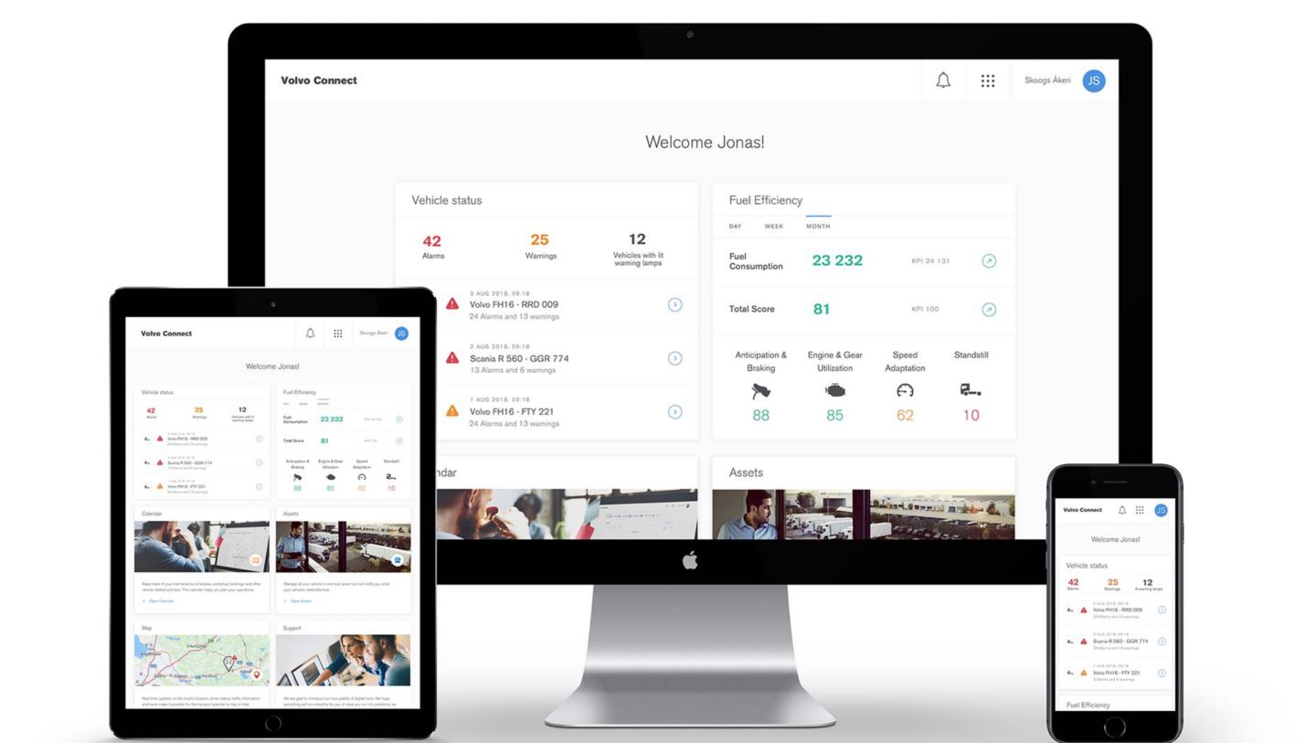 Volvo Connect wurde als Langzeitlösung konzipiert. Immer mehr neue Funktionen und Informationen werden zugänglich gemacht und neue digitale Dienste entwickelt. Das Portal bündelt diese unterschiedlichen Digital- und Vernetzungsdienste in einem einzigen Interface und erleichtert so den Zugriff auf Informationen, Neuigkeiten und Funktionen, die für ein effizientes Tagesgeschäft unverzichtbar sind.