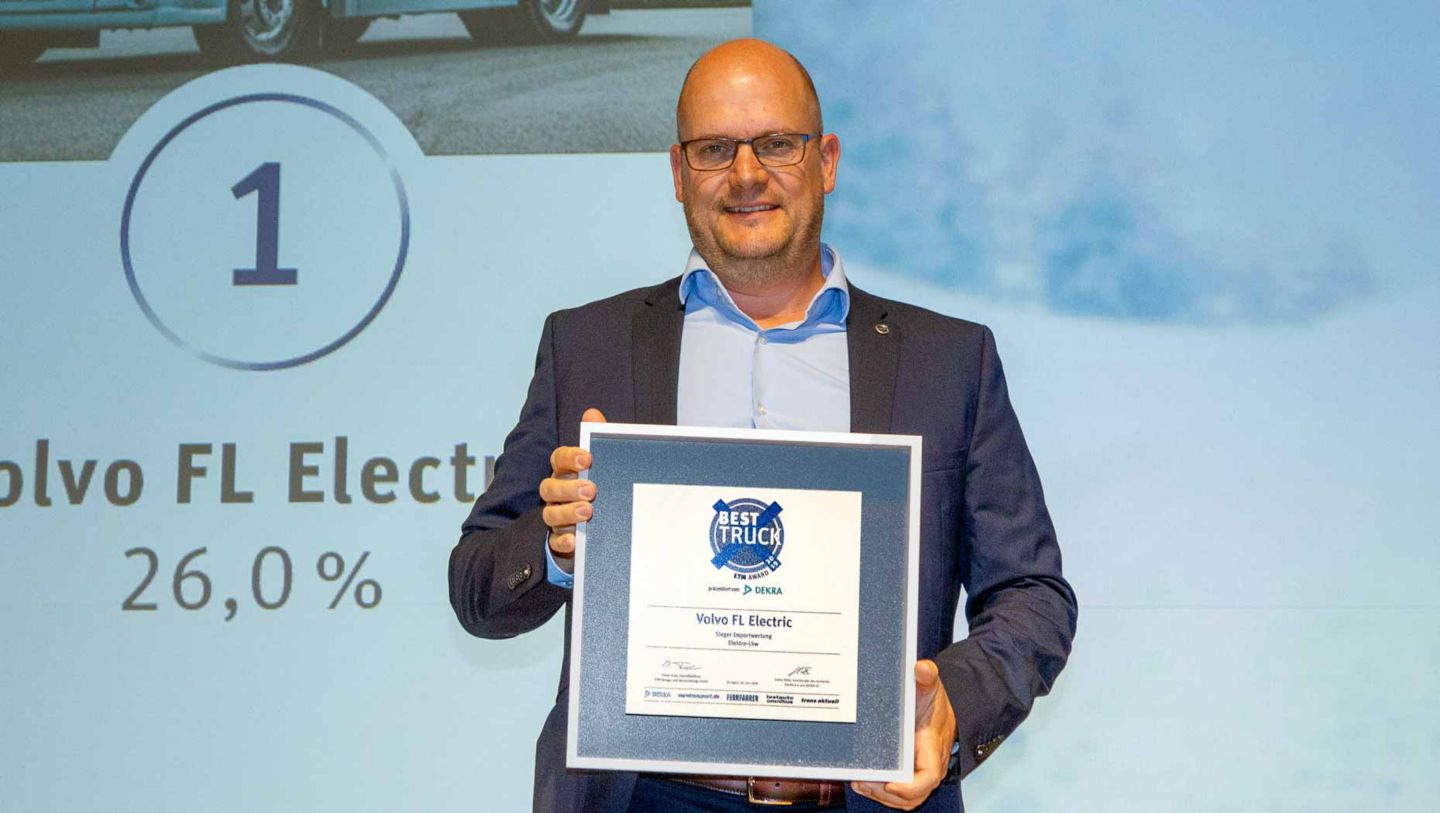 Manfred Nelles, Pressesprecher von Volvo Trucks, nahm die Preise bei der Veranstaltung am 26. Juni in Stuttgart dankend entgegen. ”Dass die Leserinnen und Leser der ETM Publikationen auch unsere neuen Fahrzeuge, wie den Volvo FL Electric und FE Electric, positiv bewerten, ist ein Ansporn auch weiter mit Innovationen und Qualität zu überzeugen.“