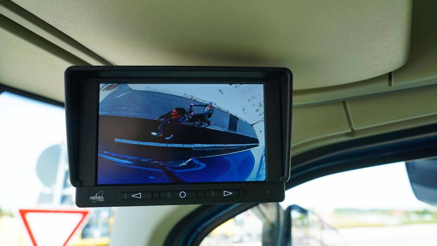 Die Kamera zeigt dann auf dem für den Fahrer optimal sichtbaren Sekundärbildschirm an der rechten A-Säule den vorderen Bereich auf der Beifahrerseite des Lkw. Damit unterstützt sie den Fahrer in der oft unübersichtlichen Abbiegesituation. Der Radar warnt zusätzlich akustisch vor anderen potentiellen Gefahren.
