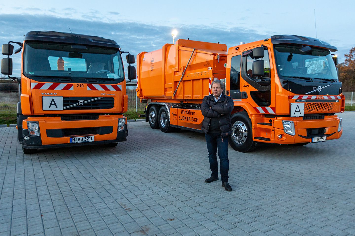 „Wir haben 2012 ein vergleichbares Fahrzeug mit Abrollkipper und Diesel-Hybridtechnik von Volvo Trucks in Betrieb genommen. Damit haben wir sehr gute Erfahrungen gemacht. Jetzt mit diesem vollelektrischen LKW den nächsten Schritt zu gehen ist die logische Konsequenz, auch weil die Zusammenarbeit mit Volvo Trucks hervorragend geklappt hat”, sagt Reinhold Bauer, Fuhrparkleiter der AWM.