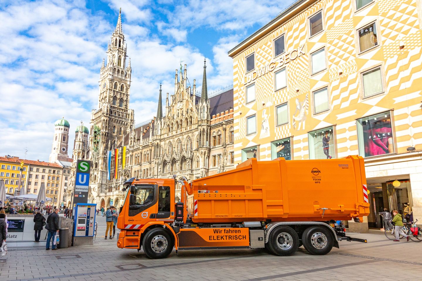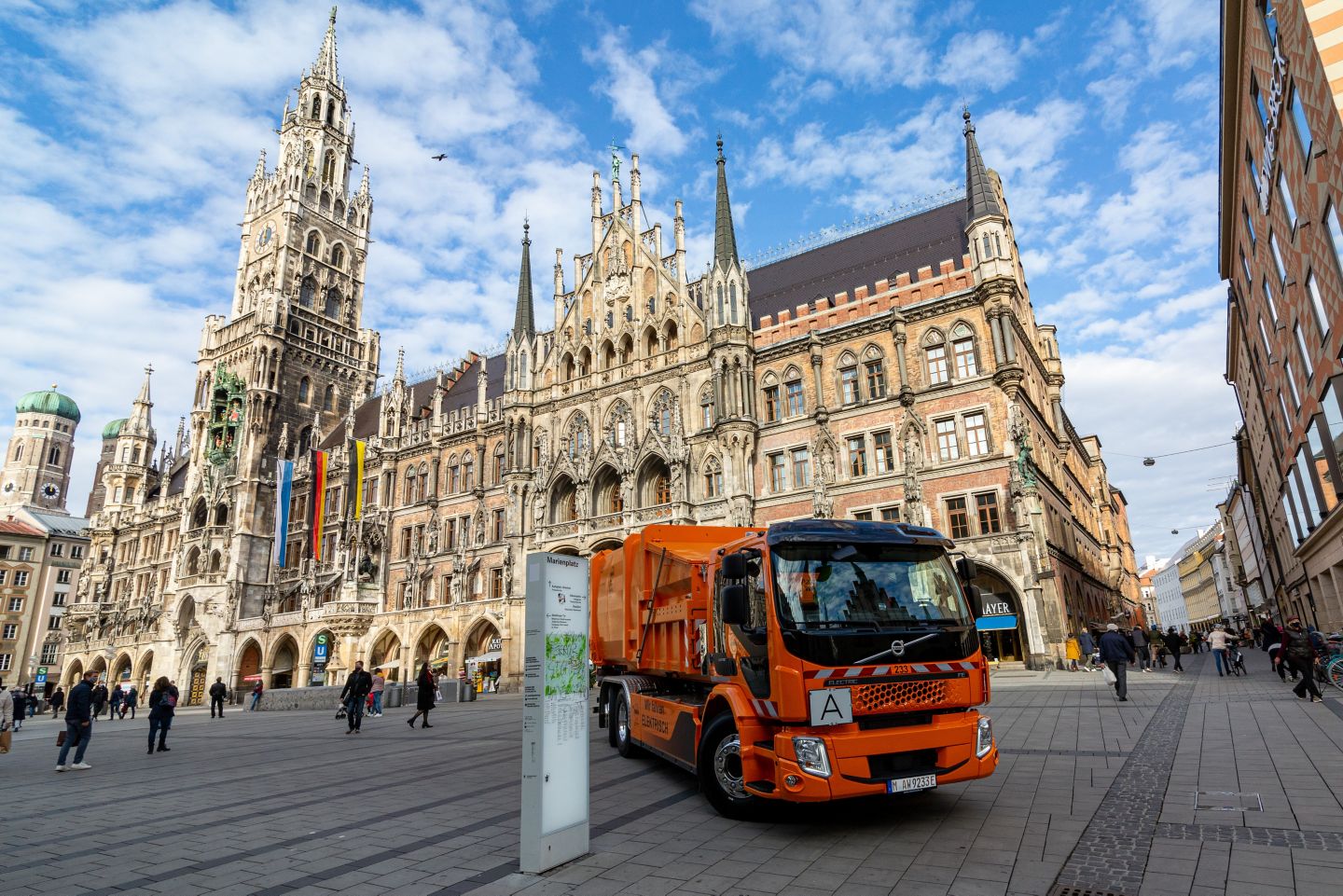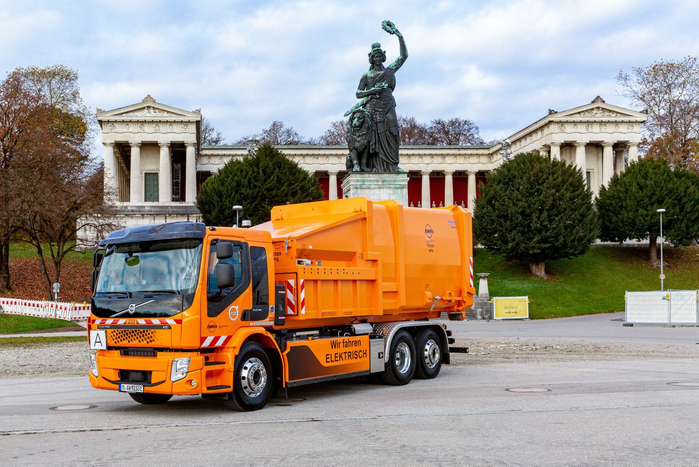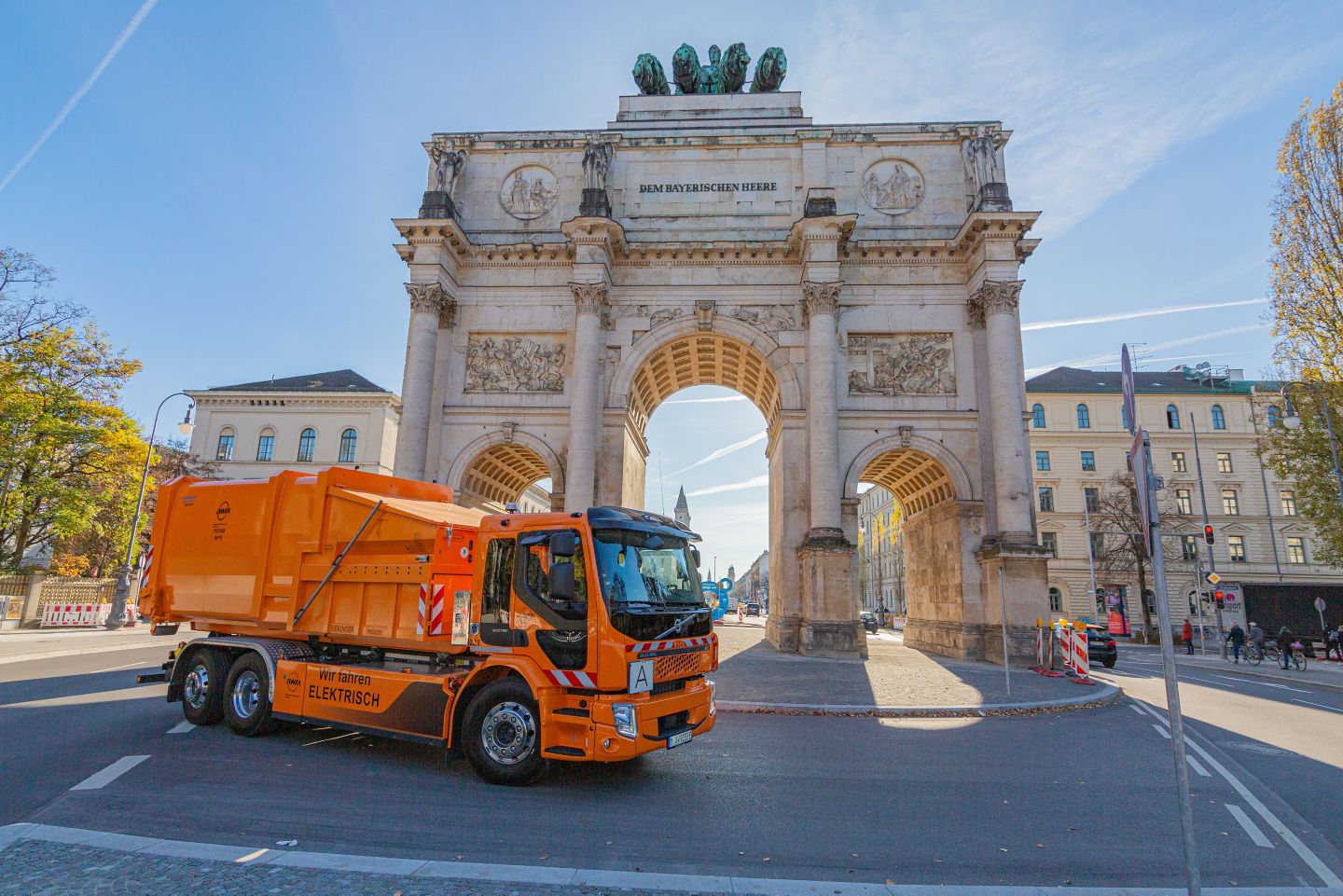 Der kommunale Entsorgungsbetrieb AWM setzt den vollelektrischen Abrollkipper Volvo FE Electric im Stadtgebiet für die Containerlogistik der Wertstoffhöfe ein. Durch den flexiblen Aufbau kann der E-Truck verschiedene Container aufnehmen – je nach Bedarf. Für diesen speziellen Einsatz hat das Fahrzeug eine Reichweite von ca. 120 Kilometern. Damit ist der 27-Tonner sicher und unabhängig im gesamten Gebiet der Landeshauptstadt München unterwegs. Vier Lithium-Ionen-Batterien mit je 50 kWh sorgen für die nötige Energie. Der E-LKW kann auf unterschiedliche Weise geladen werden. Entweder über einen AC-Ladevorgang mit bis zu 22 kW oder, wenn es schnell gehen soll, im DC-Ladevorgang mit bis zu 150 kW. Dann ist die Batterie in ca. einer Stunde wieder vollgeladen.